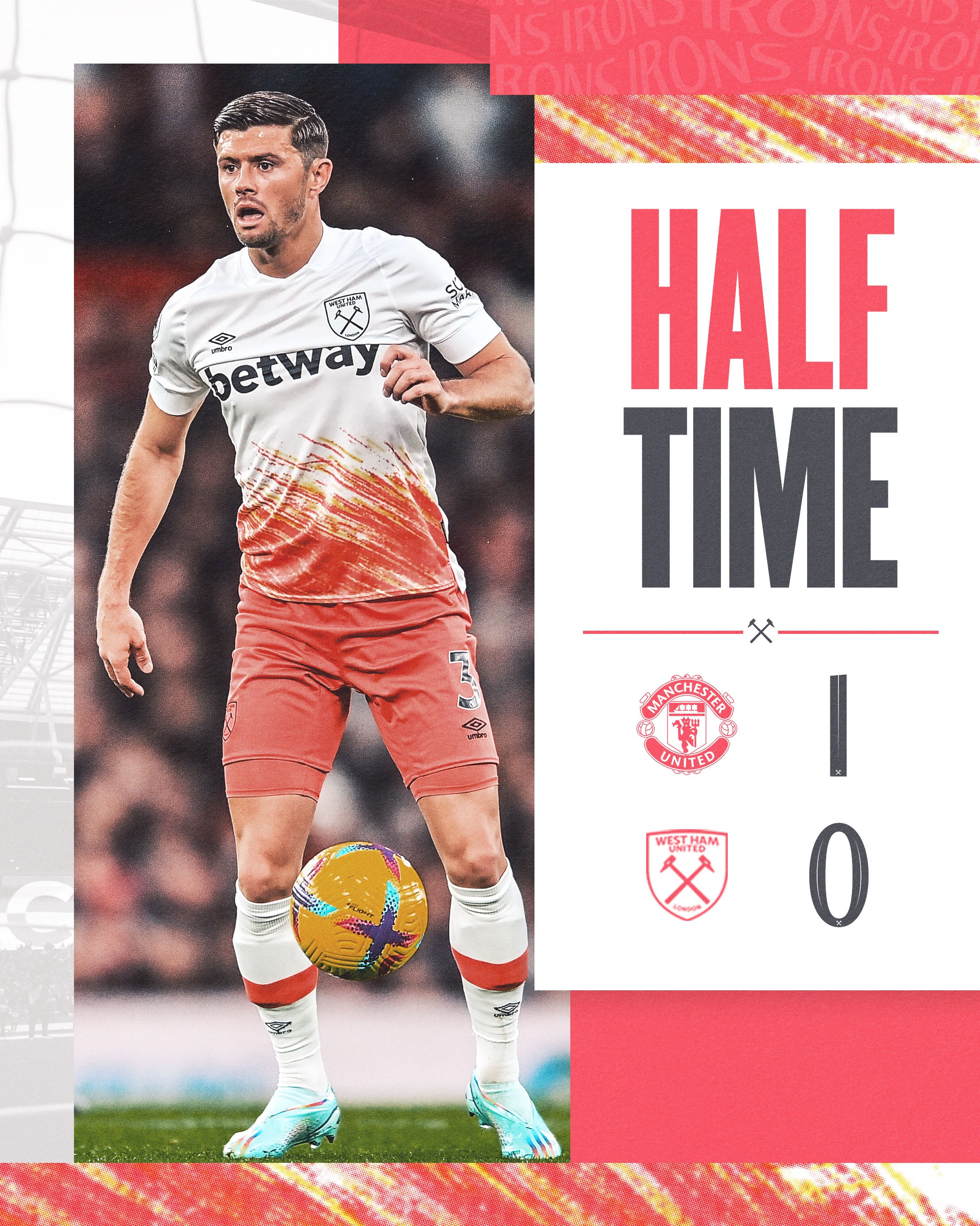 Manchester United - 710. Manchester United is going head to head with West Ham United starting on 30 Oct 2022 at 1615 UTC at Old Trafford stadium Manchester city England. United 1-0 West Ham.